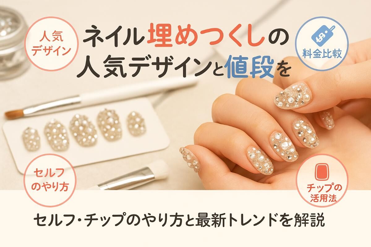 2025/08/18キラキラと輝くストーンやパールを贅沢に敷き詰めたネイル埋めつくしは、近年サロンでもセルフネイルでも圧倒的な人気を集めています。国内最大級のネイルチッ... -